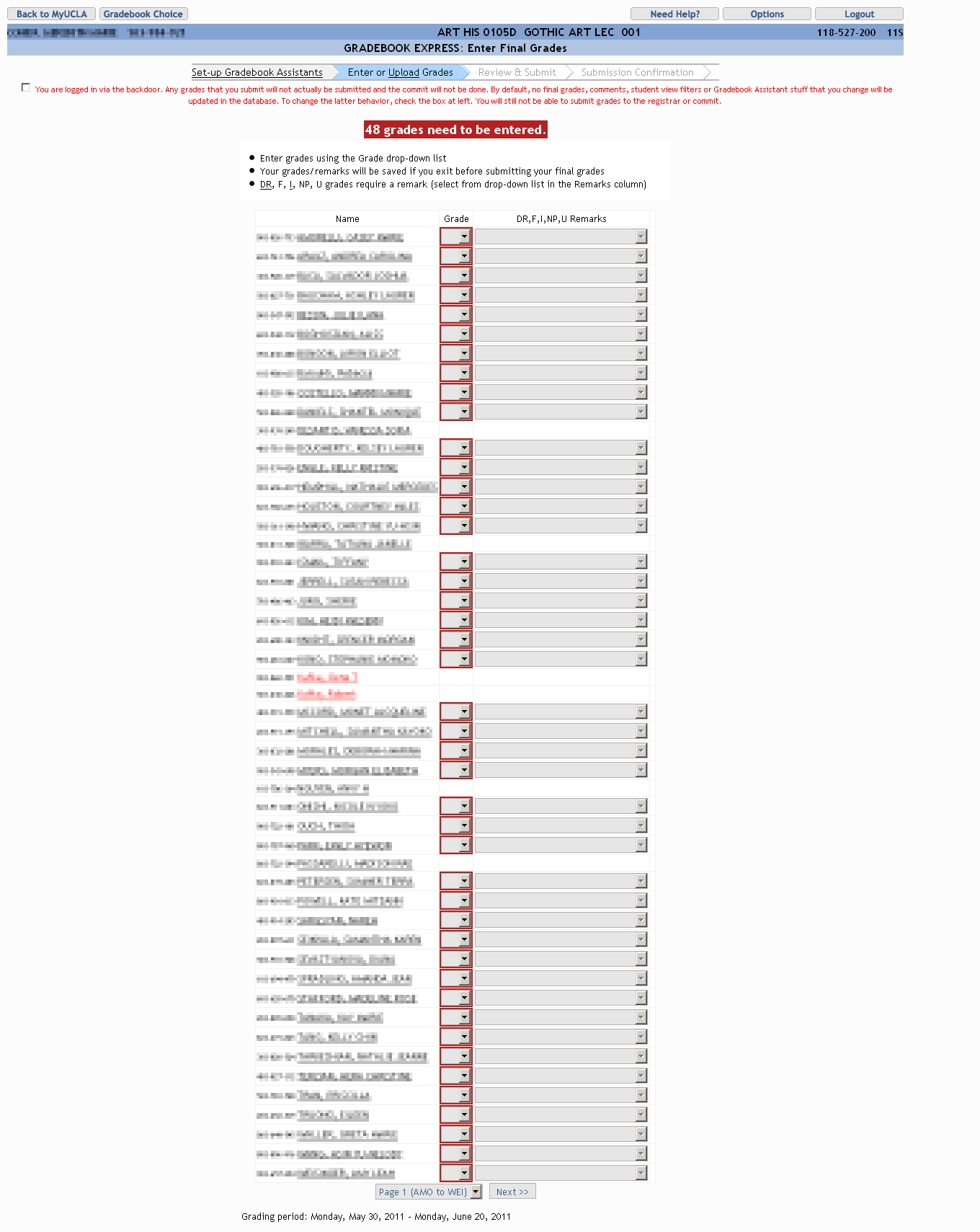 | « Gradebook: Final Grade Entry with options on shows UCLA Extension | » | |