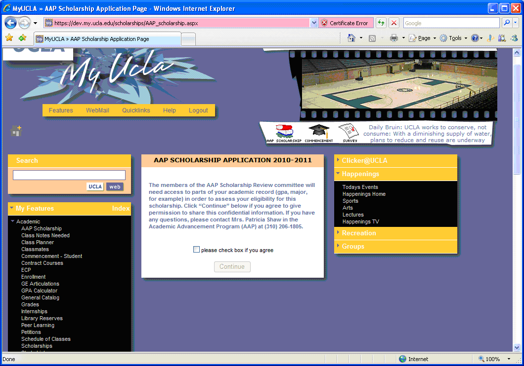 AAP Scholarship application link in menu