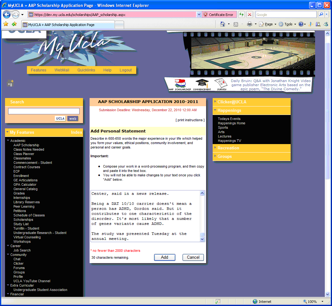 | « Personal Statement character maximum warning | After Personal Statement has been added » | |
