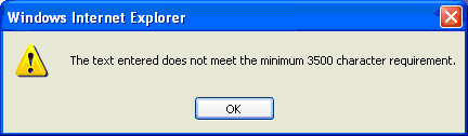 Essay minimum character warning