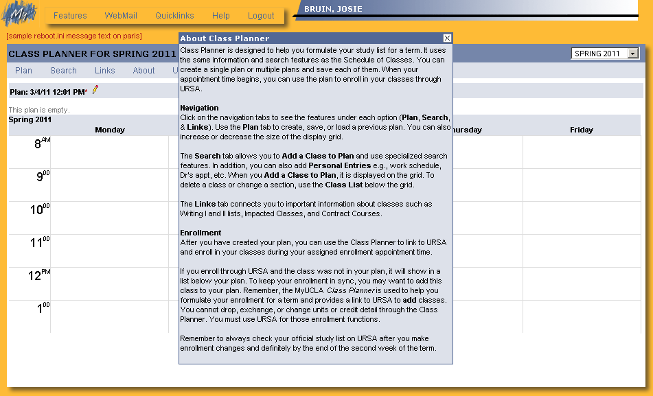 Class Planner: Entry