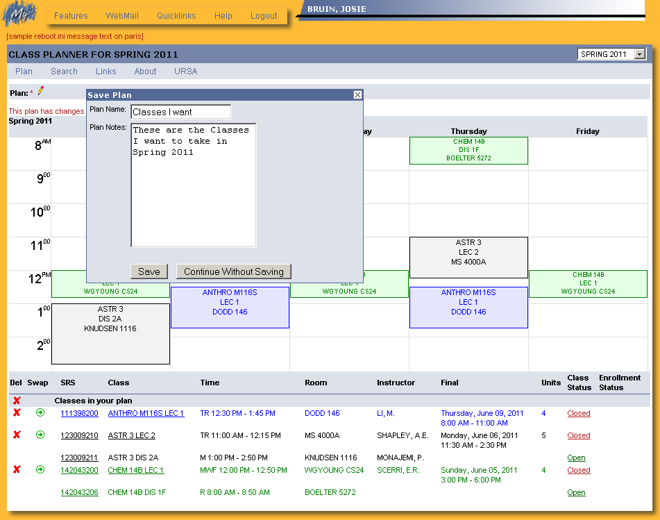 Class Planner: Save Plan