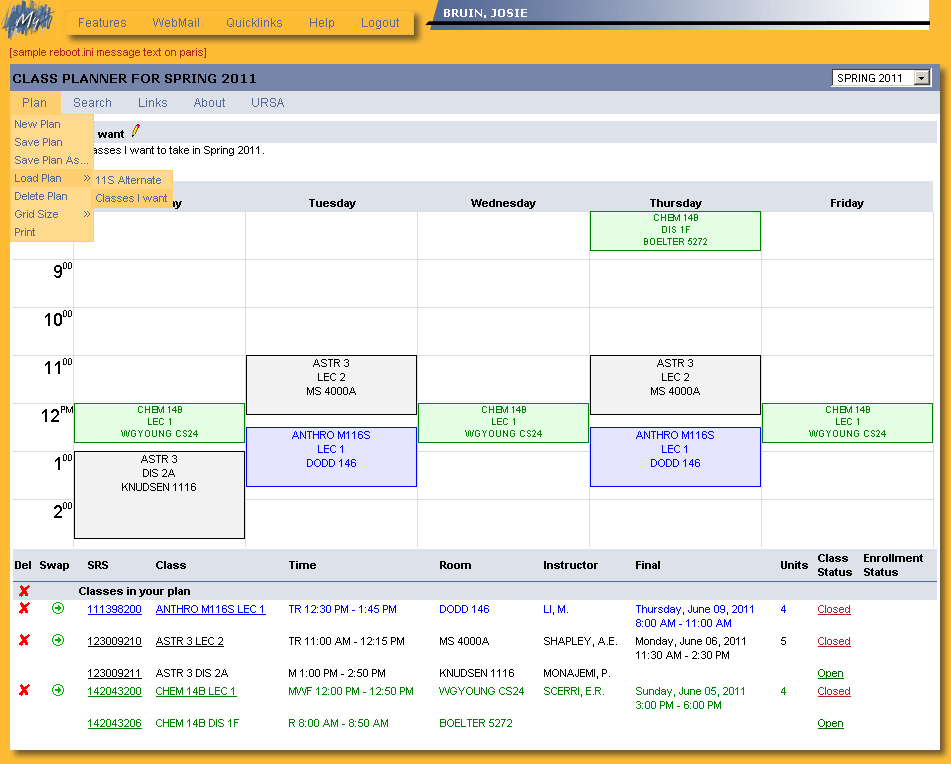 Class Planner: Multiple Saved Plans