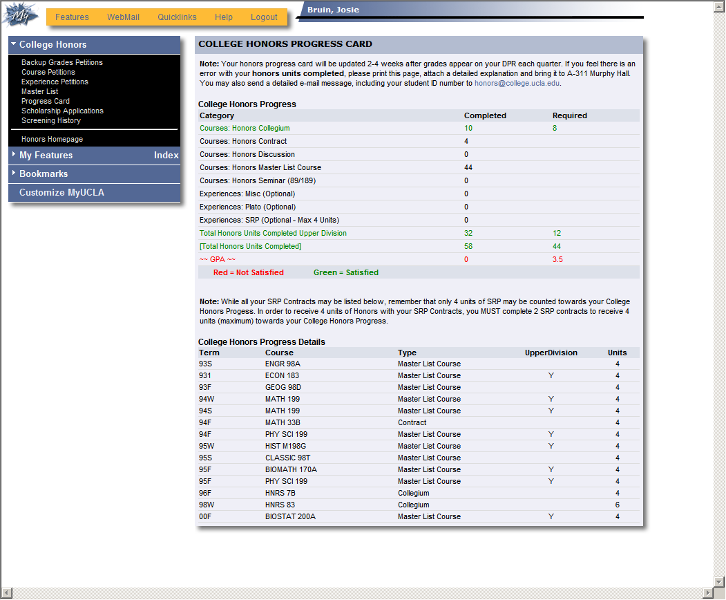 Honors Progress
