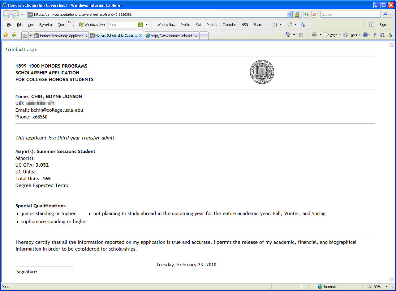 | « College Honors Scholarship Application: Checklist/Submission | College Honors Scholarship Application: Created » | |